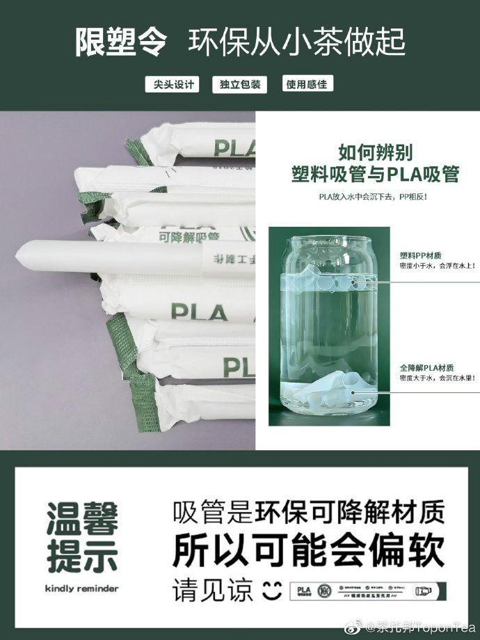 茶托邦替换塑料吸管,使用PLA可降解吸管